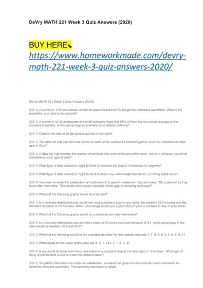 0 Response to "Download Devry Math 221 Week 3 Quiz Answers Doc"